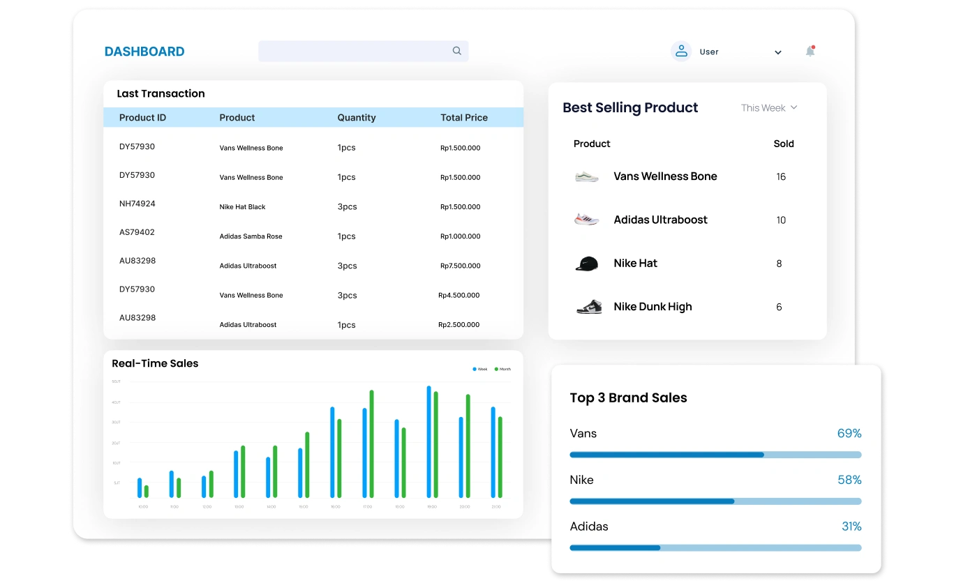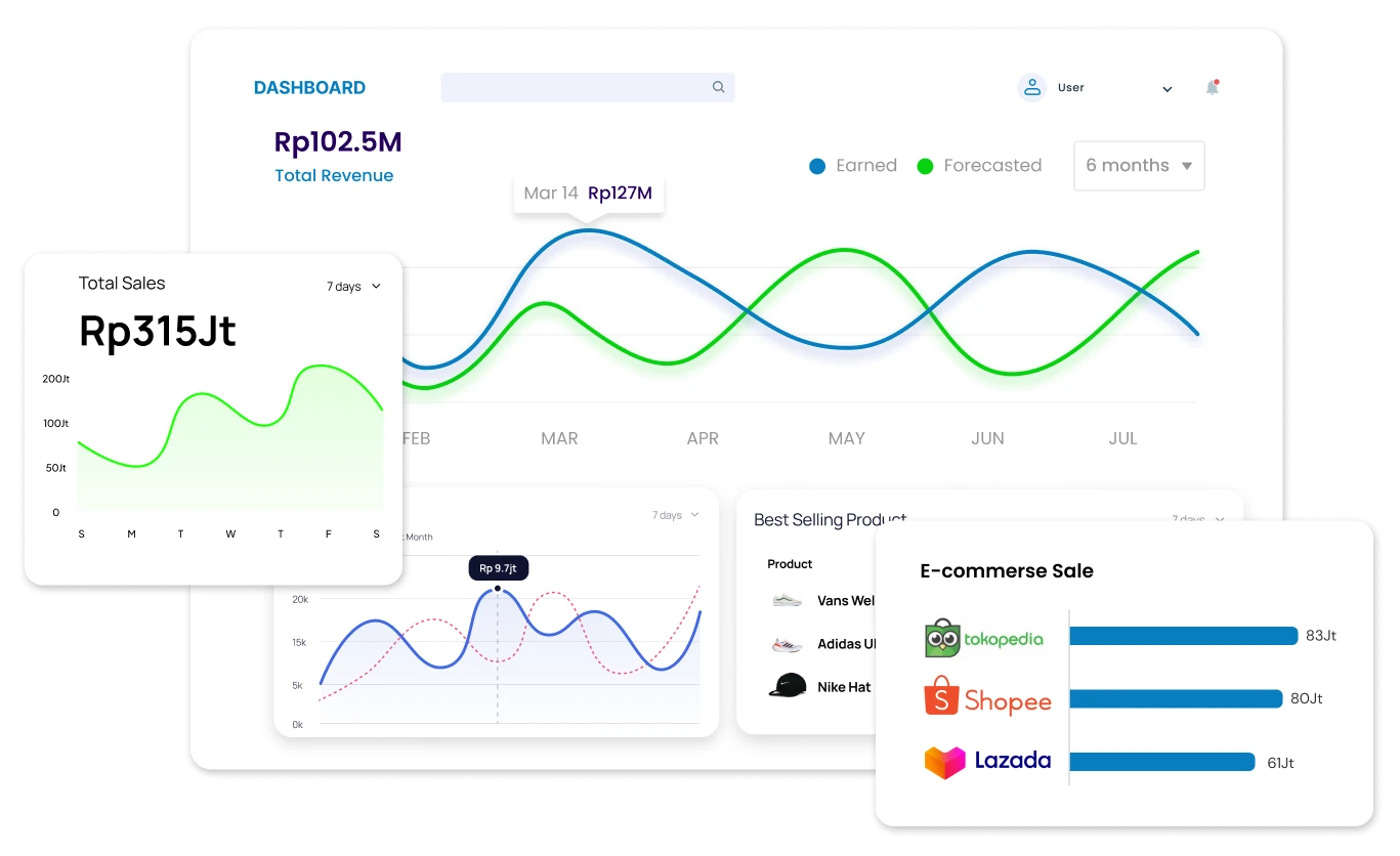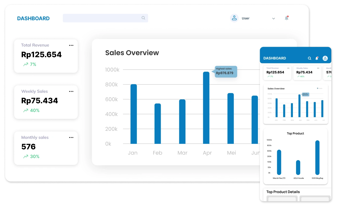 Buat keputusan bisnis akurat berdasarkan analisis penjualan, detail produk terlaris, & pelanggan terbaik secara real-time.